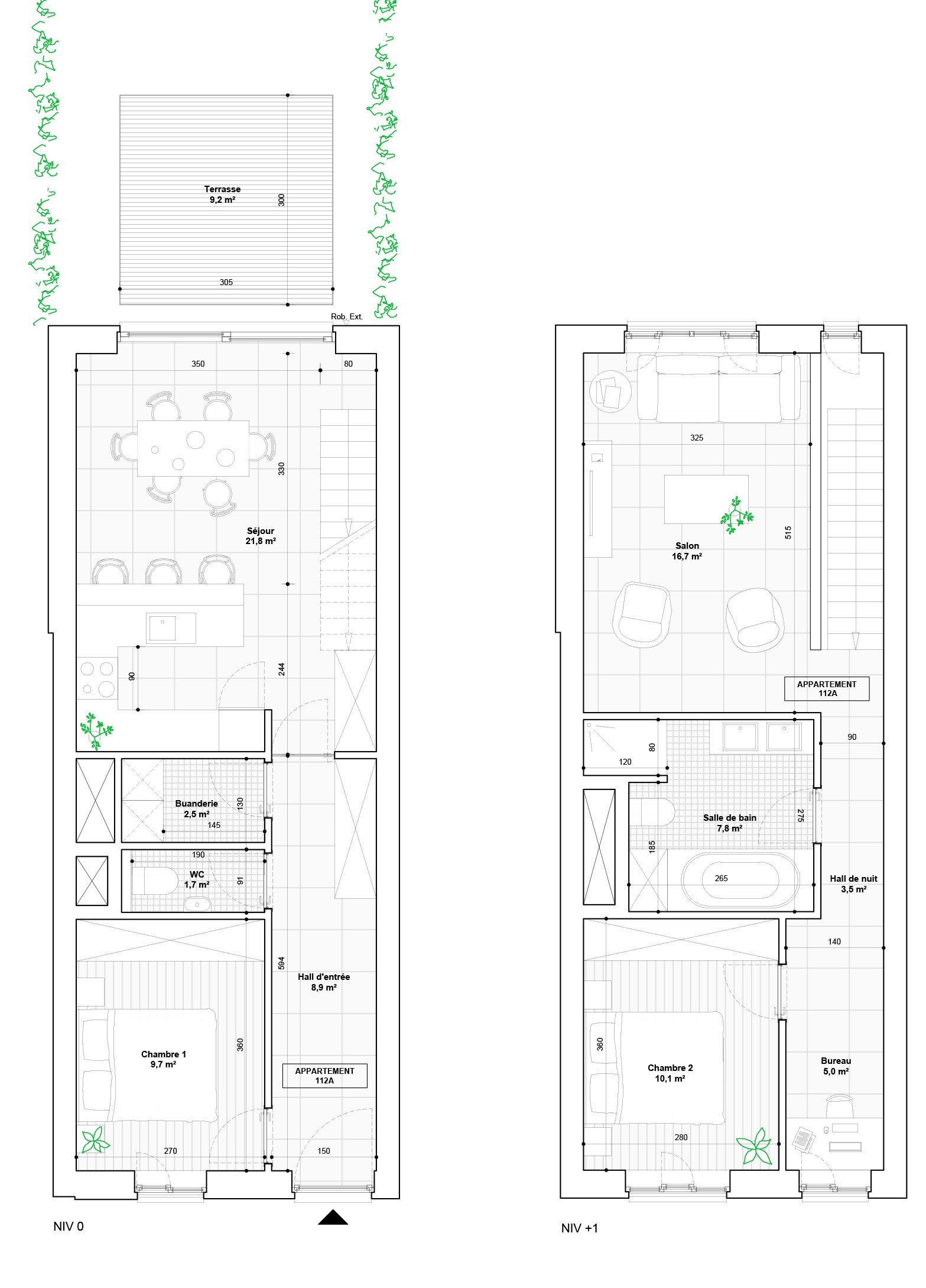 À la recherche d’une maison à vendre dans le centre-ville de Ciney ? Découvrez les 3 duplex du projet Summum 110, rue Courtejoie. Ces 3 habitations modernes et neuves bénéficient de leur propre hall d’entrée, d’un débarras, d’une cuisine, d’un séjour spacieux et lumineux, d’une belle terrasse, d’un jardin privatif… Les grandes surfaces intérieures, que nous aménageons avec vous et selon vos envies, nous permettent alors de vous offrir jusqu’à 3 chambres. Idéalement situées, ces duplexs à vendre à Ciney sont parfaites pour un jeune couple avec un enfant.